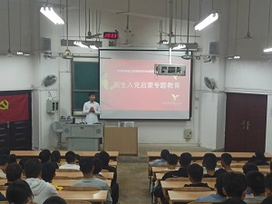 本科生第四党支部在雁山校区07615教室组织开展新生入党启蒙大会。大会在党员同志们有序的指挥与各班新生的积极配合下顺利召开,本次专题教育分为三个部分开展。