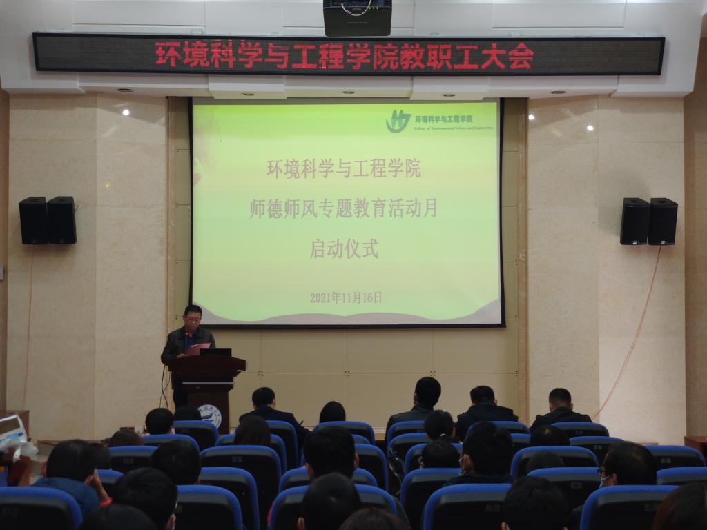 在萃华楼报告厅召开师德师风教育活动月启动仪式暨专题学习,学院全体教职工参加,会议由学院党委书记姜子亮主持。