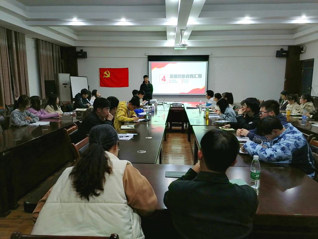 会议开始,支部副书记就转正及转预备流程进行简单介绍,随后,申请转正及转预备党员的同志依次上台发言。首先,预备党员及发展对象分别对自己的考察期进行总结汇报,入党介绍人介绍其考察期的情况。经过党员讨论、投票,大会一致同意李明敏等五名同志的转正申请及周建童等10名同志的转预备申请。