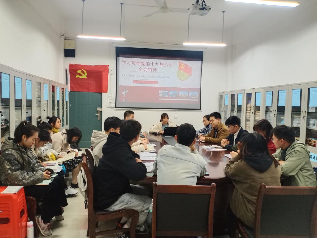 本科生第三党支部在雁山校区12414开展“学习党的十九届六中全会精神”主题党日活动,会议由支部副书记韦春伊同志主持,支部书记孙云龙老师及支部全体党员参加本次会议。