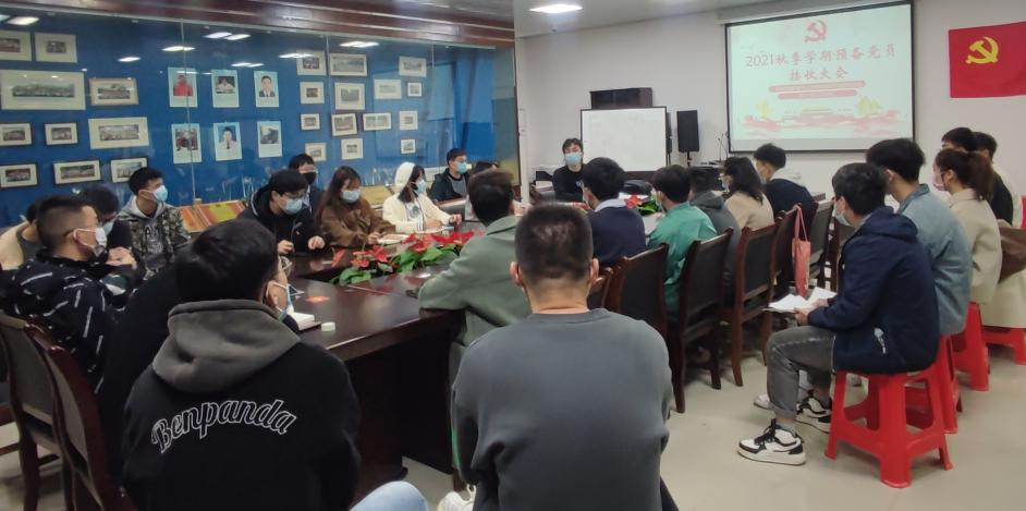 研究生第四党支部在雁山校区12310会议室召开2021秋季学期预备党员接收大会。本次大会应到党员人数符合会议召开要求,本次会议由党支部副书记石谦主持开展。