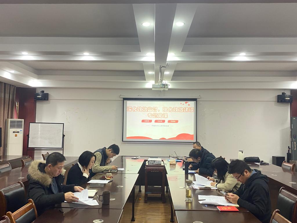在雁山校区萃华楼12407会议室开展开展“深化政治监督,强化政治建设”专题党课。学院党委书记姜子亮担任主讲,学院全体党政领导班子出席了本次会议。