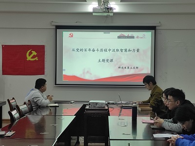 研究生第三党支部在雁山校区萃华楼12407会议室组织开展“从党的百年奋斗历程中汲取智慧和力量”主题党课,本次会议由支部书记巩宇飞主持,支部正式党员、预备党员、积极分子参加会议。