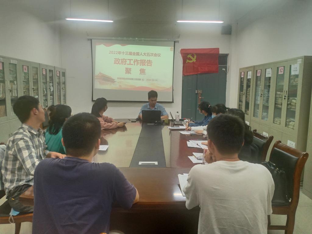 本科生第三党支部于12415开展“学习十三届全国人大五次会议政府工作报告”主题党课,会议由支部副书记韦春伊同志主持,支部书记孙云龙老师及支部全体党员参加本次会议。