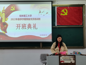 典礼在庄严的国歌中正式拉开序幕,与会全体成员起立,奏唱国歌。开班仪式上,测绘地理信息学院专职组织员吴莲莲发表致辞,她首先对本次预备党员培训班开班表示祝贺,并向全体预备党员提出三点希望:一是认真学习,必须要努力了解党的基本理论,基本路线,基本纲领,基本经验,了解党员的权利与义务;二是端正入党动机,要在思想和行为上更进一步向党组织靠拢,树立正确的三观;三是珍惜本次培训机会,严格遵守课堂纪律。