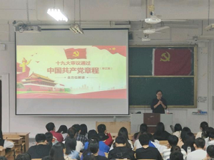 党课开始之前,全体学员齐声歌唱了歌曲《大中国》。课上,白凌婷书记开门见山指出:十九大党章修正案作为中国共产党历史发展的时代记录,具有中国特色社会主义新时代意蕴。全党同志要认真学习领会习近平新时代中国特色社会主义思想,深刻把握新时代新使命新征程,切实把思想和行动统一到党的十九大精神上来。白书记深刻阐释了党章的重要性,她以历史改革为切入点,对新党章的修改内容、学习党章的必要性以及重大意义进行强调说明。随后,白凌婷书记以理论结合实际,从习近平新时代中国特色社会主义思想、党章的概述、党章的发展历程、党章的总纲、党章的条文、学习十九大党章六个方面进一步阐述了党章的重要性,并殷勤期望在场预备党员们可以不忘初心、牢记使命。