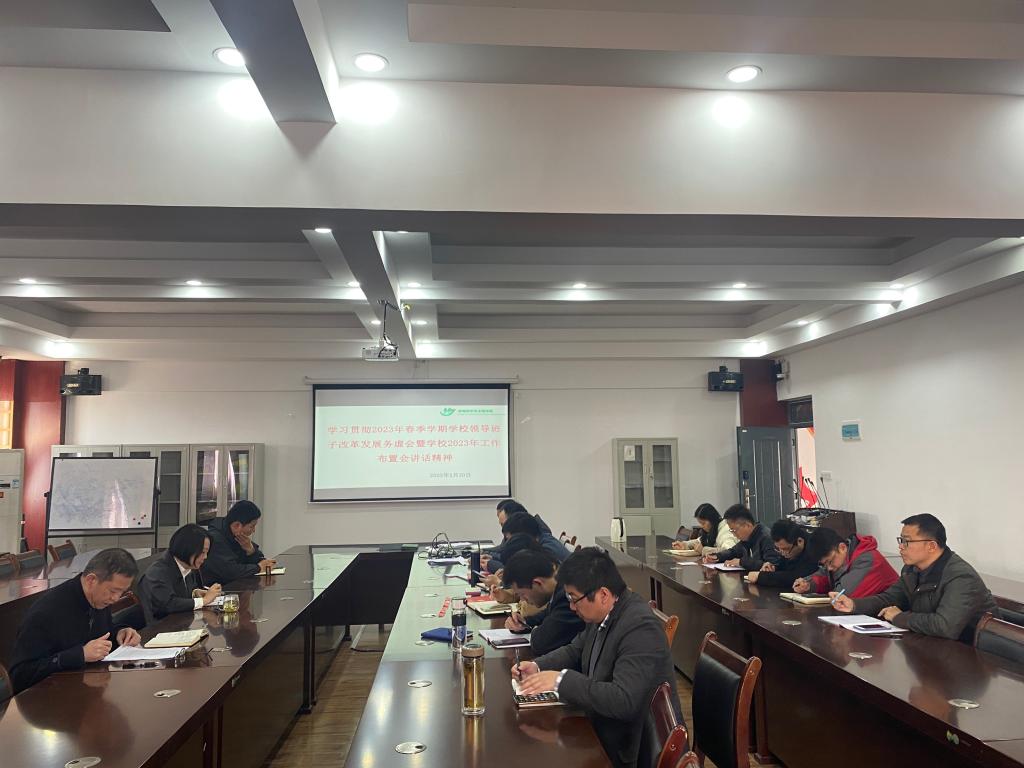 会上传达了学校第三届党委第五次全体(扩大)会议精神和2023年春季学期学校领导班子改革发展务虚会暨学校2023年工作布置会精神,组织学习了《中共黑料吃瓜网