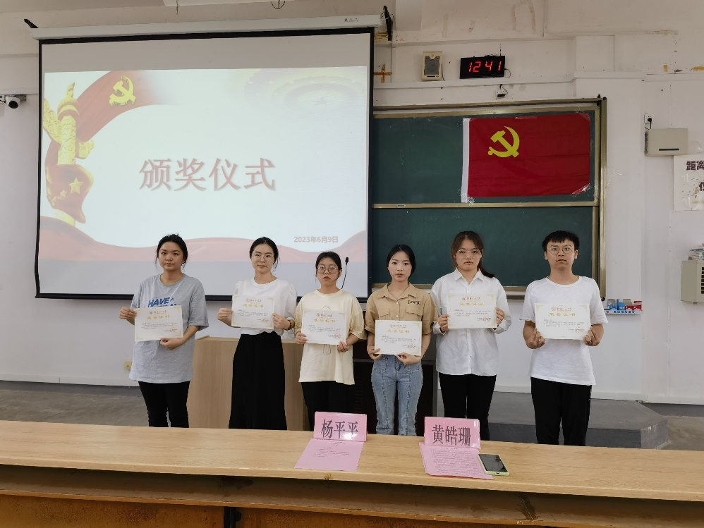 党建组织员、党建办公室主任杨平平老师作结业总结,他总结了培训成效,同时希望和要求发展对象要树立坚定理想信念,提高自身党性修养,确定终身学习理念,提高自身综合素养,注重理论联系实际,提高自身工作能力,在工作上创佳绩、争先进、做表率,以优异成绩接受党组织的考验。最后,由杨平平、黄皓珊老师对优秀学员进行颁奖。