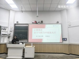 在05103教室举行“让青春在奋斗与担当中绽放光芒”主题宣讲会。本次宣讲会由本科生第四党支部中共党员韦柏乐同志担任主讲人,共有200余人参加。