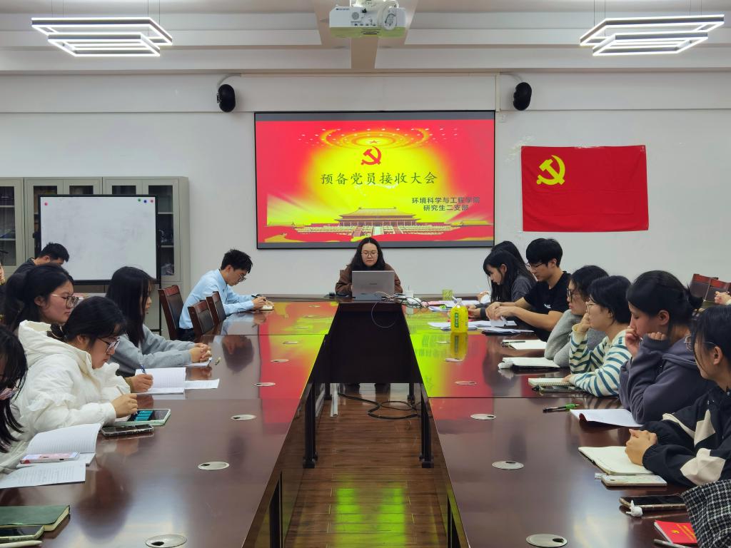 研究生二支部在雁山校区萃华楼12407会议室召开了预备党员接收大会,会议讨论关于高若婷等三名发展对象接收成为预备党员的事宜。本次会议由支部副书记主持,支部全体党员同志参与此次会议。