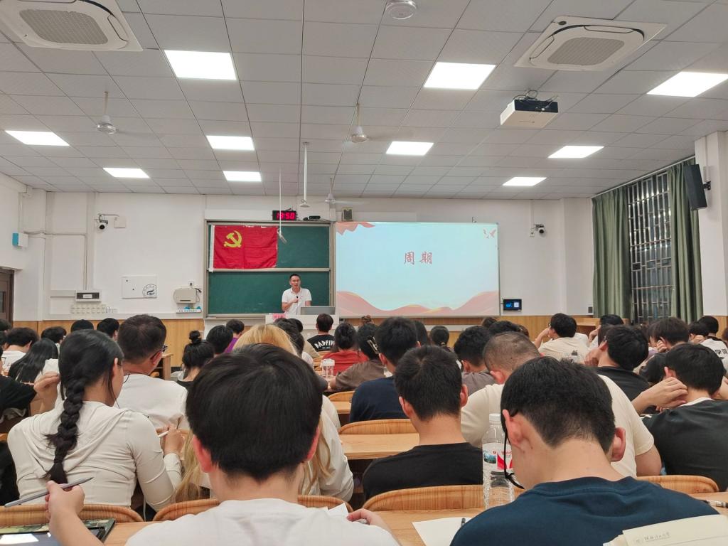 、数学与统计学院、物理与电子信息工程学院、商学院、艺术学院联合分党校第二十七期预备党员培训班全体学员讲授题为《坚持自我革命 永葆“赶考”初心》专题党课,联合分党校全体培训班学员参加党课学习。