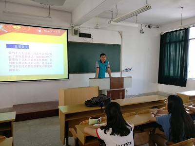 学生第一党支部书记黄兆凡老师以《习近平谈治国理政》为主题为第一党支部的学生党员做了一场理论讲学。