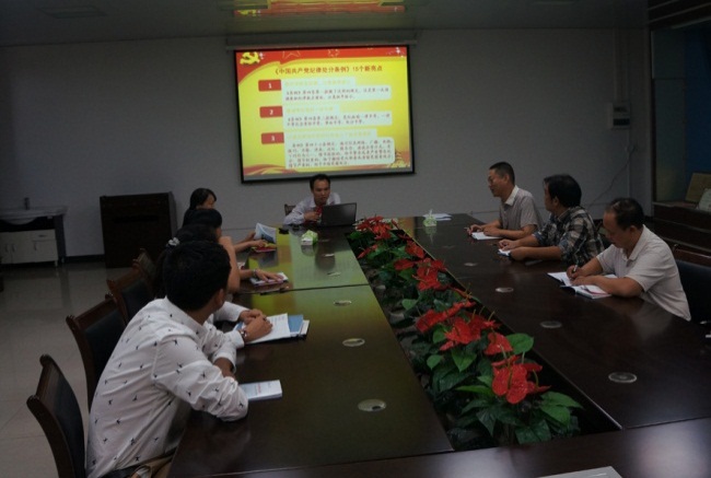 教工党员四支部在雁山12310会议室举行学习《中国共产党纪律处分条例》专题党课活动由支部书记梁延鹏做专题报告,带领全体党员认真学习《中国共产党纪律处分条例》。