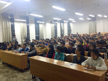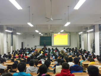 党委书记王璐同志主讲,辅导员田明浩以及2016级全体新生聆听。
