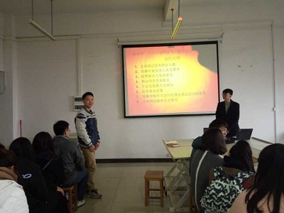 学生一支部全体成员在12501举行了以“两学一做,争做学习榜样”为主题的考研誓师大会。