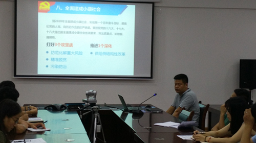 党支部书记谢永雄老师传达学校关于认真学习贯彻习近平总书记“7.26”重要讲话精神的通知精神,要求大家充分提高认识,认真组织学习,切实把思想和行动统一到重要讲话精神上来。