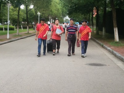 在迎新地点的党员志愿者们同样也尽职尽责,仔细的接待每一位新生和家长,并且有如一个标本,有如楷模,向大家示范怎么去做好迎新工作。大到注册报到,小到宿舍钥匙,他们都耐心讲解,热心服务,以饱满的热情、周到的服务让新生和家长感受到实实在在的温暖。