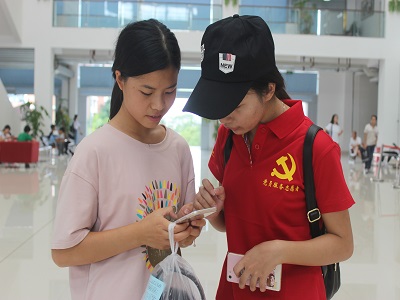 学生党员的迎新地点就在一个小角落,但是在整个校园里,无论是住宿区还是图书馆等,你都能发现党员志愿者们热情活力的身影。他们身穿统一制作的印有院标、党徽及黑料吃瓜网