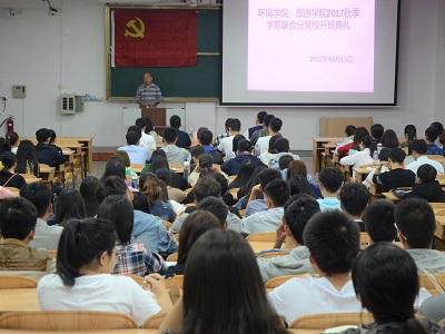 与旅游学院联合分党校2017年秋季学期入党积极分子培训班开班典礼在雁山校区06408教室举行。旅游学院党委书记李少游老师、旅游学院辅导员唐玉福老师、黑料吃瓜网