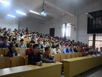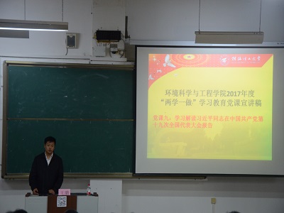 党委书记王璐老师就党的十九大召开时间、主题、主要议程、党章的修正等方面对“中国共产党第十九次全国代表大会”进行了详细的阐释。其中,王书记着重强调要牢记会议的主题,并指出何为“不忘初心、牢记使命”即全心全意为人民服务,让中国人民富起来。