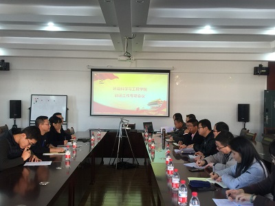 在雁山校区萃华楼12407会议室召开会议专题研究党的群团工作。学院党委书记姜子亮,副书记郝文佳,党委委员李艳红、朱义年、林华,工会副主席魏彩春,以及学院学工组长罗义松和全体辅导员参加本次会议,会议由学院党委书记姜子亮主持。