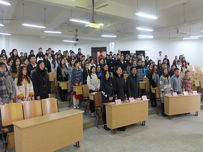 、外国语学院、旅游与风景园林学院、化学与生物工程学院、公共管理学院与传媒学院、马克思主义学院联合分党校第16期预备党员培训班开班典礼在雁山校区05308顺利举行。外国语学院党校校长、党委书记陈文乾老师,各分党校教务员参加了本次开班典礼。