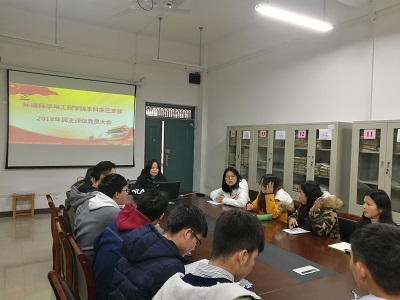 本科生第三党支部在雁山校区12415会议室召开了2018年度支部专题组织生活会和民主评议党员大会。本次大会由支部副书记韦春快主持,支部书记夏晴及全体支部党员同志参会。