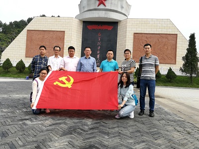 全体党员赴战斗旧址亲身体验和感受当年的“战火硝烟”,于酒海井红军烈士墓园,党员们瞻仰、祭奠在湘江战役中壮烈牺牲的红军烈士,集体默哀。