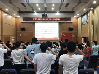 毕业生党员代表——学生三支部卫承芳同学的带领下,所有党员庄严地重温了入党誓词,表达了对党的忠诚、为共产主义奋斗终身的决心。