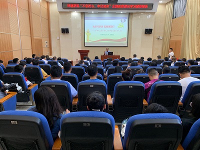 在雁山校区萃华楼一楼报告厅举行“不忘初心、牢记使命”主题教育“读原著、学原文、悟原理”读书班开班仪式暨理论学习辅导报告,学院全体师生党员参加,会议由院党委书记姜子亮主持。