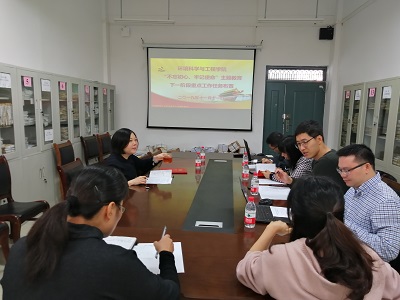 在雁山校区12415会议室召开下一阶段“不忘初心、牢记使命”主题教育重点工作任务布置会。学院全体领导班子参加会议,会议由院党委副书记郝文佳主持。