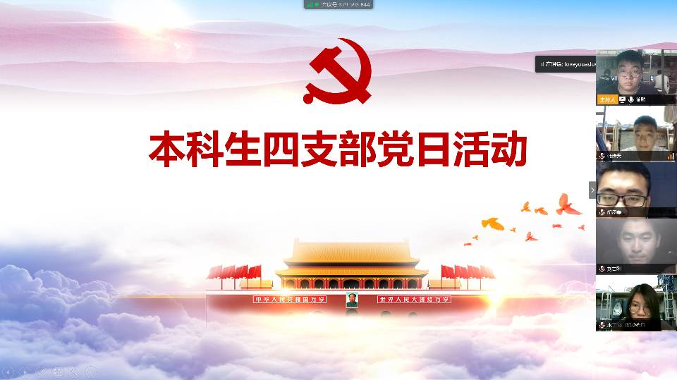 本科生第四党支部为进一步贯彻学院党委精神,利用腾讯会议开展主题党日活动,充分发挥党组织的凝聚力,传导先进正能量,为疫情防控营造浓厚氛围。支部于2020年4月30日晚19:00利用腾讯会议召开线上主题党日活动。支部副书记简鹏同志主持会议,全体支部党员和发展对象参加会议。