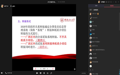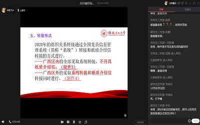 在组织开展了2020届毕业生“党组织关系转接工作的理论与实务”线上培训会,培训会由学院党建专职组织员夏晴老师主持,学院全体毕业生党员参加了此次培训。