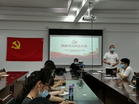 本科生第二党支部于12407召开2020年春季学期预备党员接收大会。本次会议由支部副书记任旺主持,支部全体党员参加,唐源江老师出席此次会议。会议就对蓝天将、乔时轩、殷剑琦、陈小桥四名预备党员接收为正式党员进行讨论和表决。