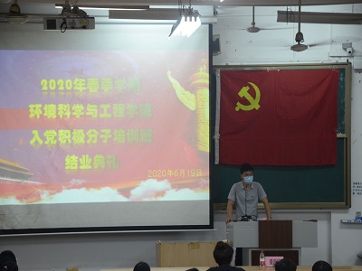 结业典礼上,首先,全体肃立,奏唱国歌。接着,潘泓序老师进行发言,他强调,本次培训班的开设,旨在培养一批优秀的入党积极分子,为党组织的发展添砖加瓦,注入一批新鲜血液,希望经过此次培训之后,各位入党积极分子能汲取到更多与党相关的理论知识,进一步督促自己,端正自己的入党动机,坚定自己的政治立场。入党动机是否端正,是考察入党积极分子是否有资格入党的核心条件。同时一名优秀的入党积极分子要有坚定的政治立场,把思想政治建设放在第一位,加强思想武装,坚持以马克思主义政治观对照自己、改造自己、提高自己。希望大家以这次培训班为新的起点,把培训成果转化为规划学习的新思路,思想进步的新动力,始终把从全心全意为人民服务的责任扛在肩上,放在心上。最后,19级学院代表郭倩君作为入党积极分子进行发言,她认为,作为入党积极分子,我们一定要从思想上认识到作为一名入党积极分子的重要性,我们不但要端正自己的入党动机,认真学习和宣传党的方针政策,积极向党组织靠拢,而且要全心全意为同学们服务,不断完善自己,并影响身边的每-位同学;在今后学习生活中要以一名党员的标准来严格要求自己,虽然现在我们还不是一名正式党员,但是从现在起我们就要时刻以一名党员的标准来要求自己。同时我们也要积极地参加各种实践活动,从小事上提升自己,在细节中完善自己,努力向党员同志看齐,缩小自己与正式党员的差距。争取早日加入中国共产党这个大家庭。