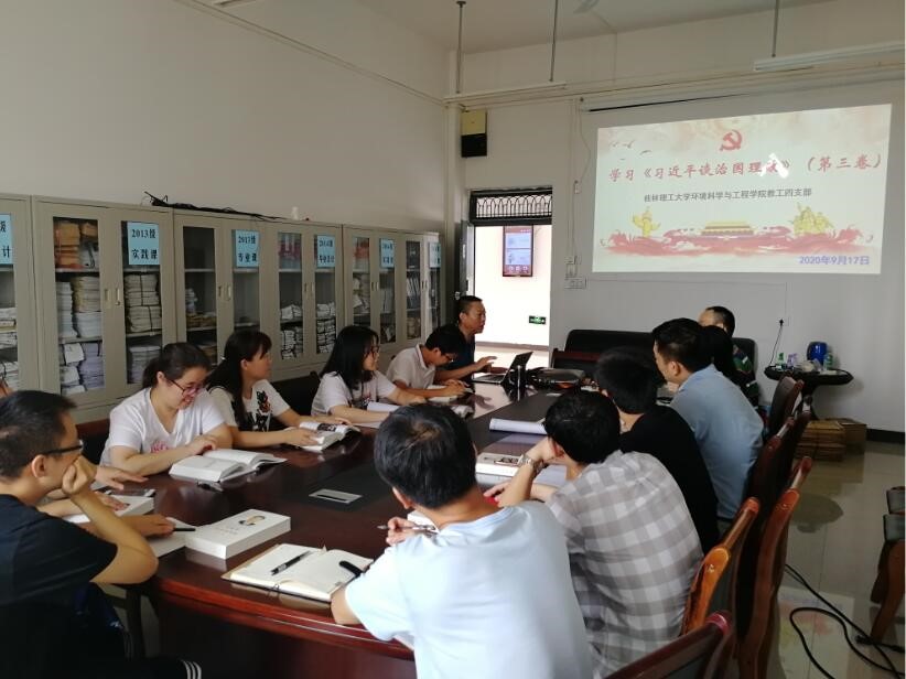 教工四支部在雁山12414会议室召开专题党课学习会,传达学习《中央宣传部、中央组织部关于认真组织学习〈习近平谈治国理政〉第三卷的通知》精神,集体学习《习近平谈治国理政》第三卷“十三、促进人与自然和谐共生”章节内容。