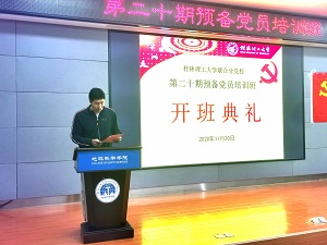 开班仪式在雄壮的国歌声中正式拉开帷幕。2018级本科生刘勇毅作为学员代表发言。他代表全体学员郑重承诺:我们一定不辜负老师和学校的期望,努力学习,遵守纪律,在行动和思想上向党组织靠拢,争取以优异的成绩和表现通过党校的培训考试,力争早日成为一名合格的共产党员!