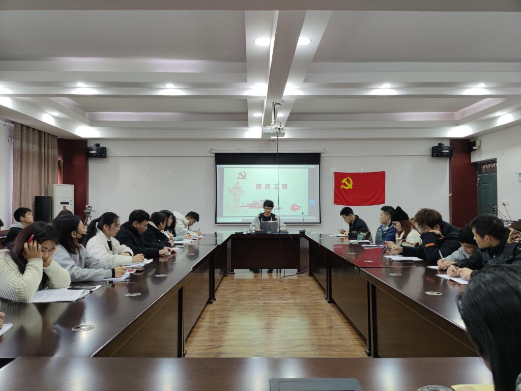 本科生第三党支部于雁山校区12407会议室开展了“探月工程”主题党日活动。本次活动由黎威同志主持。