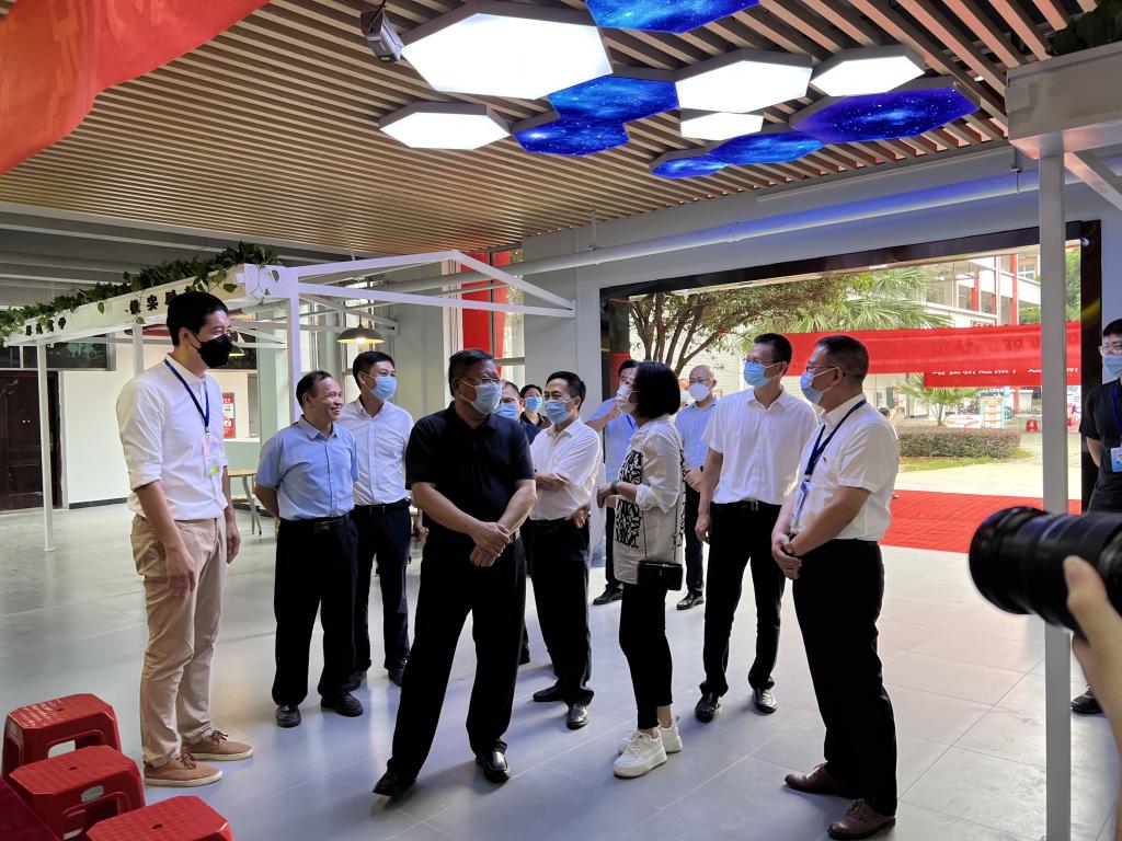 相关负责人的陪同下深入“一站式”学生社区现场参观了该社区的建成情况。看到“一站式”学生社区致力于将园区打造成为集学生思想教育、师生交流、文化活动、生活服务于一体的教育生活园地,党委书记邓军及解庆林校长都给予了赞许,并对“一站式”学生社区未来的发展规划提出要求,希望大家再接再厉,按计划实施,深入贯彻习近平总书记关于教育的重要论述,提升新时代高校党建和思想政治工作系统化、精细化水平。