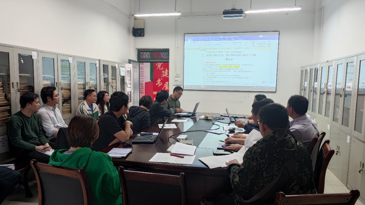 根据学校、学院的统一部署,为了更好地做好迎接本科教育教学审核评估工作,2023年4月27日下午,给排水科学与工程教研室在雁山校区12414召开了《本科教育教学审核评估学习手册》专题学习会议,会议由教研室主任徐宇峰主持,学院副院长黄亮亮教授和教研室全体教师出席了本次会议。