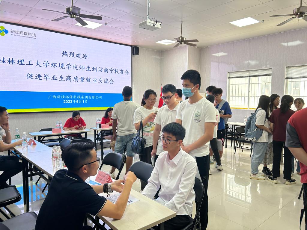 在南宁校友会的组织下,新桂环保科技集团有限公司、华蓝设计有限公司、北京百年宏达净化科技有限公司、中国建筑材料工业地质勘查中心广西总队、广东新环环保产业集团有限公司、北京汉通建筑规划设计有限公司(排名不分先后)等20余家知名校友企业参加交流会,校友企业负责人纷纷对母校提供的人才平台表示感谢,同时希望与母校持续交流合作,为促进母校毕业生高质量发展作出新的更大的贡献。